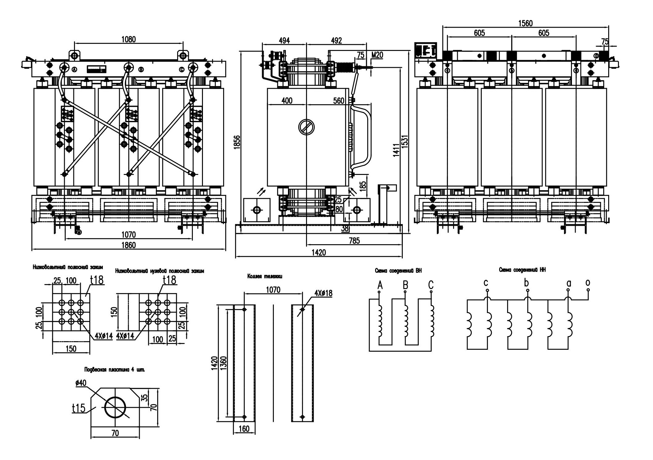 Чертеж сухого трансформатора ТСЛ 4000 ква с литой изоляцией прилагается. Купить сухой трансформатор 4000 ква с литой изоляцией у производителя Востокэнерготранс.
