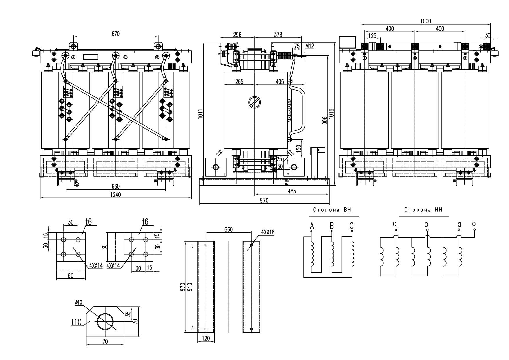 Габариты трансформатора, мм: 1240*970*1016