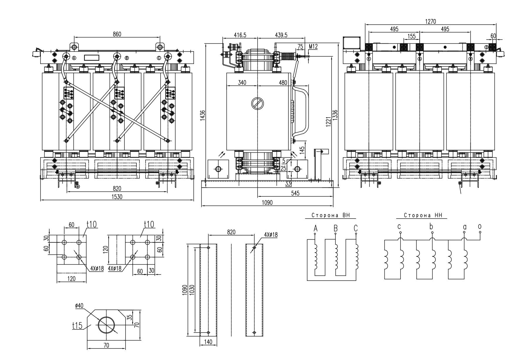 Чертеж сухого трансформатора ТСЛ 2000 ква с литой изоляцией прилагается.